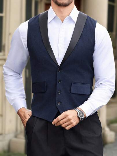 Manfinity Mode 男士披肩领撞色背心简约休闲通勤 - 藏蓝色 - 查看 1