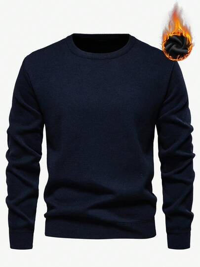 Manfinity Mode 男士纯色长袖休闲圆领羊毛衫,秋冬