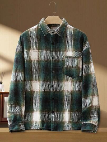 Manfinity NXTstreet 男士休闲长袖格子外套,绿色,Old Money,秋季,冬季 - 綠色 - 查看 1