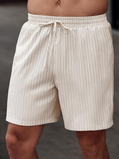 Manfinity RelaxMax 男士休闲日常斜口袋抽绳腰短裤 - 卡其色 - 查看 1