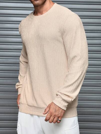 Manfinity Homme 男士纯色长袖圆领纹理套头衫,秋冬 - 杏色 - 查看 1