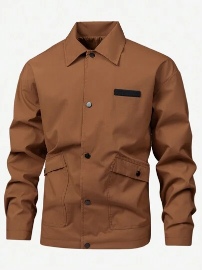 Manfinity Running 男友风男士休闲长袖口袋宽松运动夹克,春秋季 - 棕色 - 查看 6