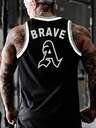 Manfinity Sport PWRUP 男友风格男士休闲圆领短袖骷髅印花简约 T 恤,日常穿着,适合健身房锻炼上衣,透气万圣节派对健身上衣