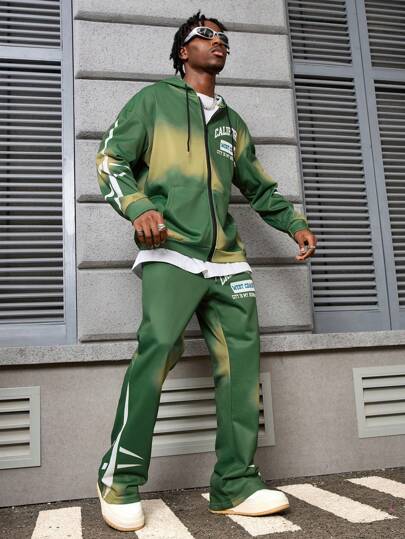 PAVTROS 男式简约印花圆领连帽卫衣和裤子套装 - 彩色 - 查看 1