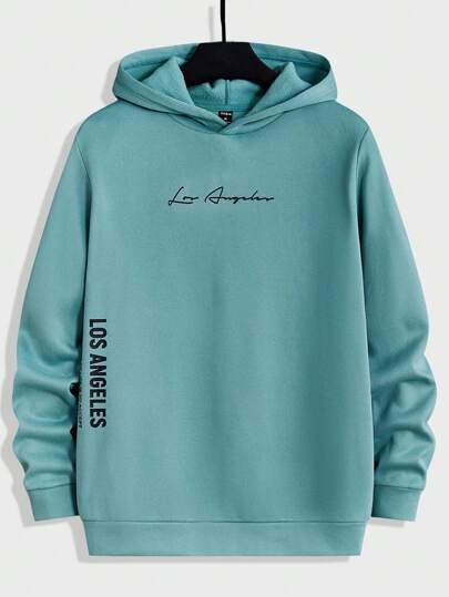 Manfinity VCAY 男士字母图案保暖内衬连帽衫 - 綠色 - 查看 1
