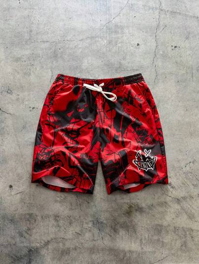 Manfinity VCAY 男士宽松数码印花梭织短裤 - 紅色 - 查看 1