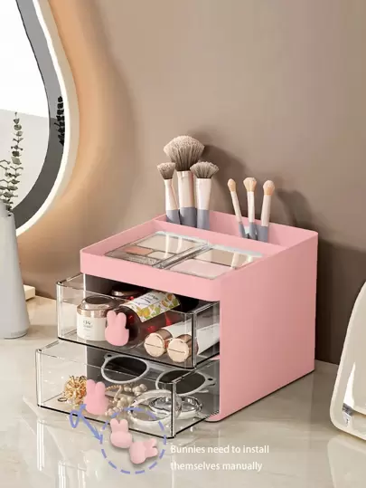 美甲抽屉收纳盒,1个多功能桌面化妆品收纳盒,带抽屉,大容量防水防尘塑料整理盒,可放置于梳妆台上,大尺寸,可收纳美甲工具、指甲油和胶水,浴室梳妆台礼物,送给妈妈、爸爸、男士、朋友、老师,生日、婚礼、办公桌、置物架、配件、礼盒、趣味礼物、收纳盒、珠宝盒、化妆刷收纳袋、化妆刷架、香水收纳袋、化妆包,圣诞节礼物创意,女士礼物 - 粉色 - 查看 2