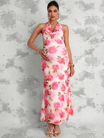MaterniChic 高领修身长款孕妇连衣裙 - 粉色 - 查看 1
