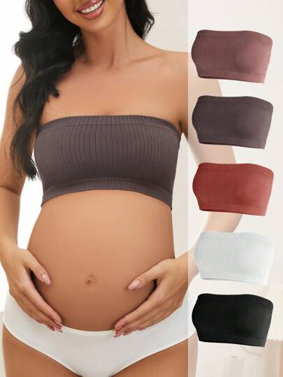 SHEIN 孕婦純色肋紋針織無肩帶胸圍,5件裝 - 彩色 - 查看 5