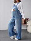 SHEIN 可调节肩带孕妇牛仔背带裤,休闲宽松阔腿长裤,蓝色