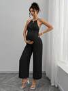 SHEIN 孕妇休闲细肩带长款连体裤配蝴蝶结,孕妇装