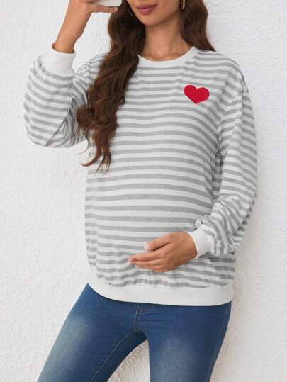 SHEIN 秋冬季孕妇宽松运动衫 - 淺灰色 - 查看 1