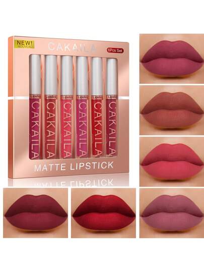 啞光唇彩套裝,6入組持久穿戴防水液體口紅成套工具唇妝套裝 - 彩色 - 查看 6