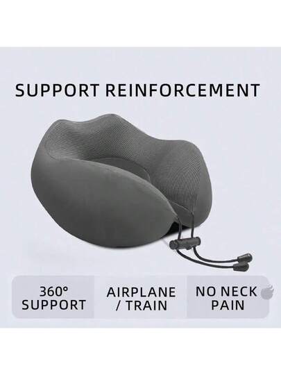 记忆海绵 U 型颈枕,颈椎支撑垫,适合午睡、睡觉和旅行 - 黑色 - 查看 1