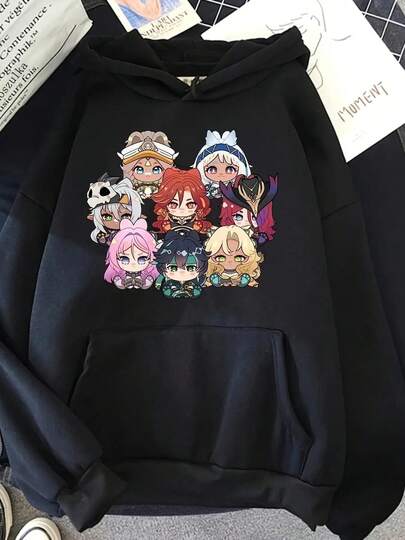 6. Men's Casual Fashion Sweatshirt With Anime Character Print - Light Gray, Long Sleeve, Regular Fit, Pocket, Heat Transfer Print, Sporty Style, Comfortable Clothing | Anime Print Sweatshirt | Comfortable Sweatshirt