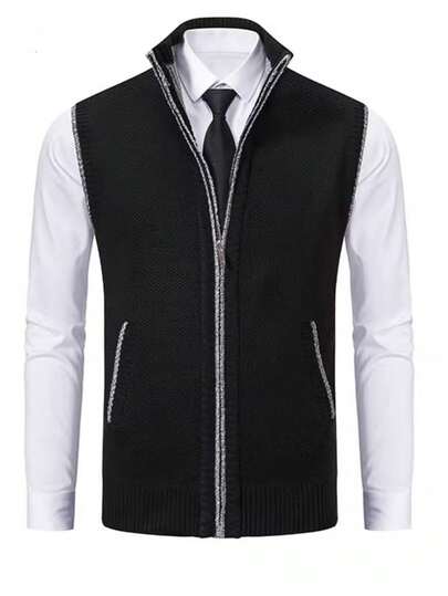 Review: 合身: 男士休闲保暖针织无袖毛衣背心,男士针织开衫,布料質感極佳
