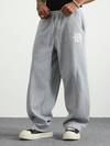 Manfinity Homme 男士字母印花圆领长袖卫衣和抽绳腰带运动裤套装,秋季服装