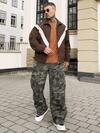 PAVTROS 男士拉链翻领字母图案保暖长袖夹克,冬季外套,秋冬休闲街头风拉链夹克