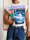 Manfinity EMRG 超大号都市风格破洞趣味巨型图案印花短款背心