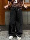 Grunge Goth Y2K 风格时尚哥特休闲直筒宽松街头运动学院摇滚年轻口袋牛仔裤,男士四季皆宜