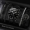 1 件/4 件男士休闲个性化运动 PU 皮革石英手表和子弹项链首饰套装