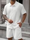 男式加大码两件套提花面料短袖衬衫带抽绳口袋和裤子度假套装,春夏舒适服装