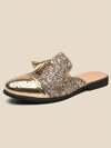 布洛克亮片一脚蹬穆勒鞋男款金色夏季时尚露背流苏乐福鞋发型师商务休闲皮鞋