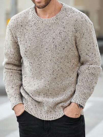 Manfinity Homme 男士混纺针织圆领长袖宽松休闲粗针织拼色毛衣,秋冬季,适合外出,丈夫 - 彩色 - 查看 1