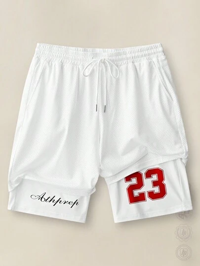 Manfinity VCAY 男士数字字母印花模拟两件套运动短裤,返校 - 彩色 - 查看 1