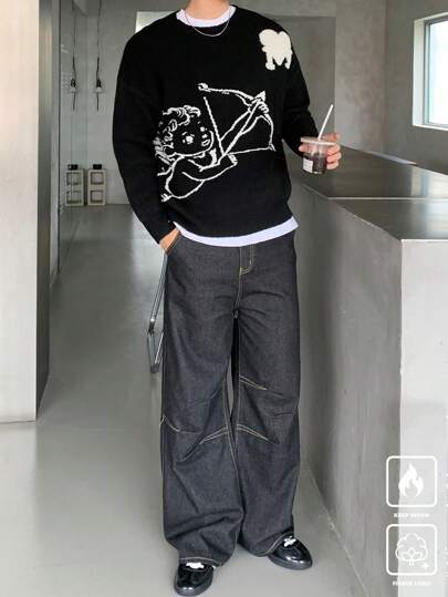 Manfinity CasualKnits 男式图案印花休闲套头衫 - 彩色 - 查看 1