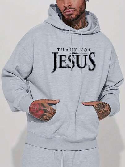 Manfinity Dauomo 男士灰色帽衫,前胸印有圖案並有前袋 - 淺灰色 - 查看 6