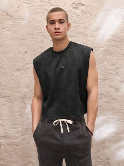 SWAVVY 男士针织时尚休闲日常宽松无袖短款背心,适合秋季 - 黑色 - 查看 2