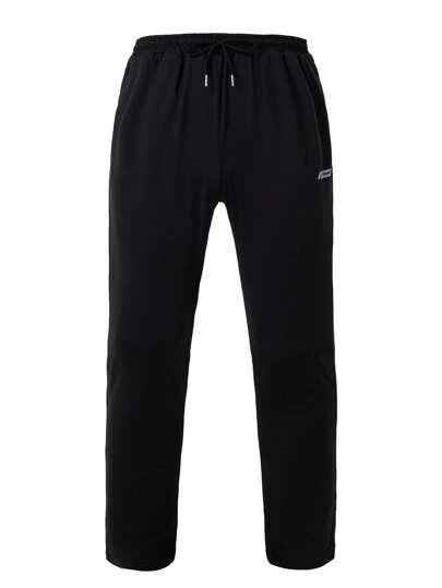 Manfinity Sport Corelite 男士字母印花抽绳腰带口袋运动长裤 - 黑色 - 查看 1