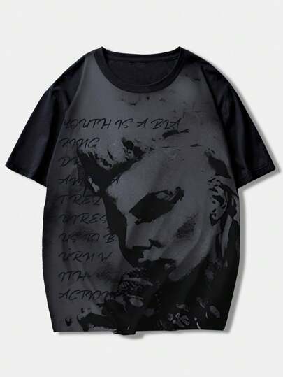 ROMWE MEN Grunge Punk 男款 Opiumcore 深色印花 T 卹 - 黑色 - 查看 1