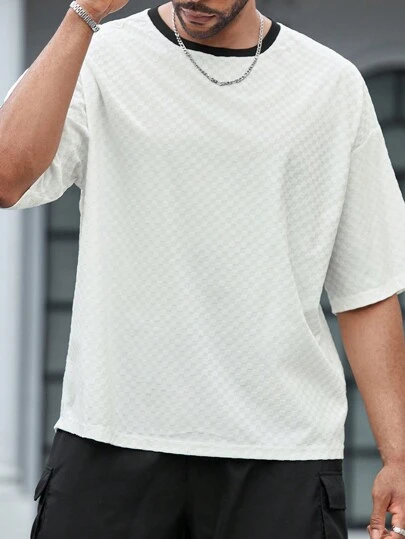 Manfinity Homme 男士夏季大碼拼接短袖圓領休閒T恤 - 白色 - 查看 1