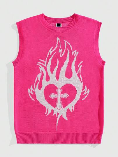 ROMWE MEN Street Life 男士圆领无袖火焰图案休闲毛衣 - 粉色 - 查看 1