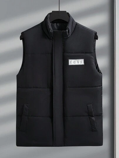 Manfinity Homme 男士纯色前拉链无袖简约上衣,休闲日常穿着 - 黑色 - 查看 1