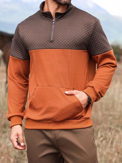Manfinity Homme 男士纯色拼接前拉链长袖口袋休闲夹克 - 彩色 - 查看 1