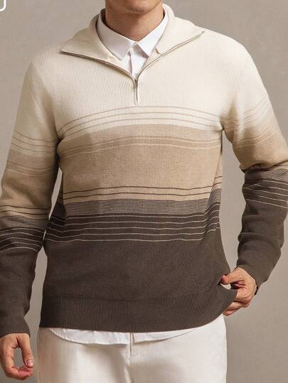 Manfinity Homme 男士纯色拼接前拉链长袖休闲毛衣 - 彩色 - 查看 1