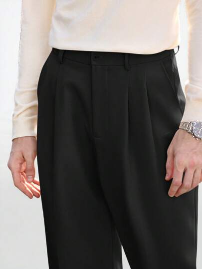 Manfinity Mode 男士梭织长款商务休闲中腰直筒裤,适合日常穿着 - 黑色 - 查看 1