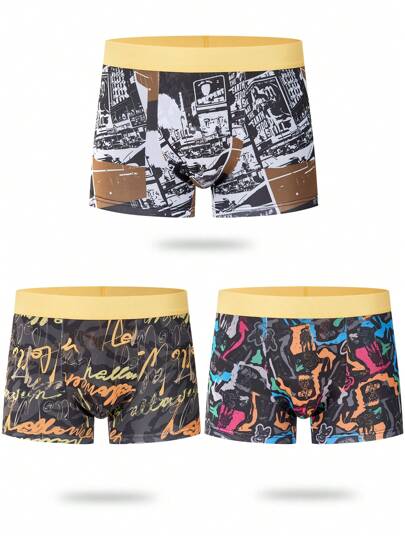 男士3入組圖文印花細身短褲 - 彩色 - 查看 1