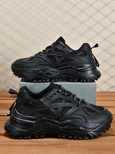 男士前綁帶老爹鞋 - 黑色 - 查看 1