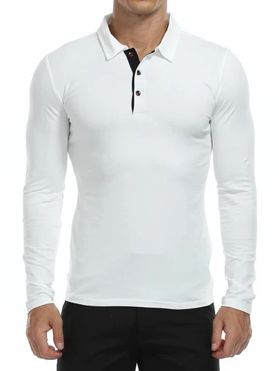 男士前紐扣POLO衫 - 白色 - 查看 1