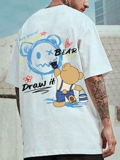 Manfinity EMRG 男士卡通和字母圖案T恤 - 白色 - 查看 1