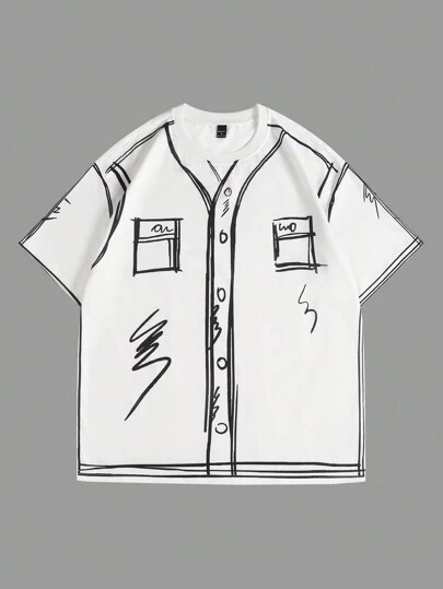 Manfinity EMRG 男士休闲拼色印花 T 恤,夏季,度假,送给朋友 - 白色 - 查看 1