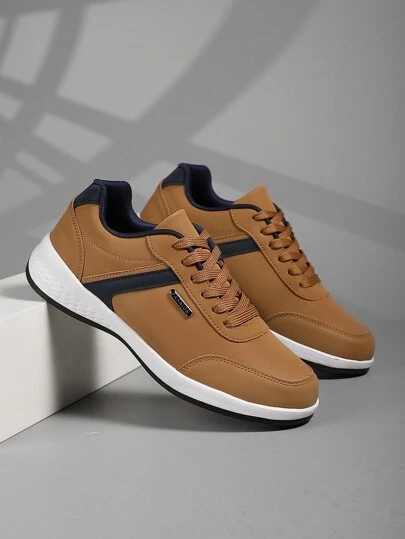 男士休闲运动系带滑板运动鞋个性化街头时尚鞋 - 駝色 - 查看 1