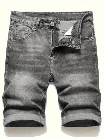 男士休闲洗水破洞牛仔短裤 - 灰色 - 查看 1