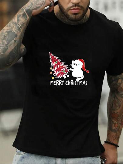男士聖誕圖案T恤 - 黑色 - 查看 1