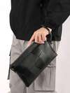 1个男士商务手提包 - 黑色皮革拉链腕包,配有可拆卸肩带,超薄钱包,可装卡片和现金,高档办公配件,2025男士包袋礼品,黑色钱包