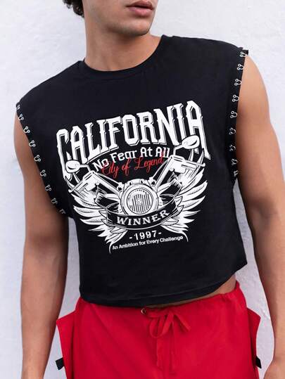 FeverCity 男士棉質字母圖形無袖出門性感背心,男友禮物 - 黑色 - 查看 7